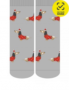 Носки женские с рисунком собак такс в новогодних костюмах