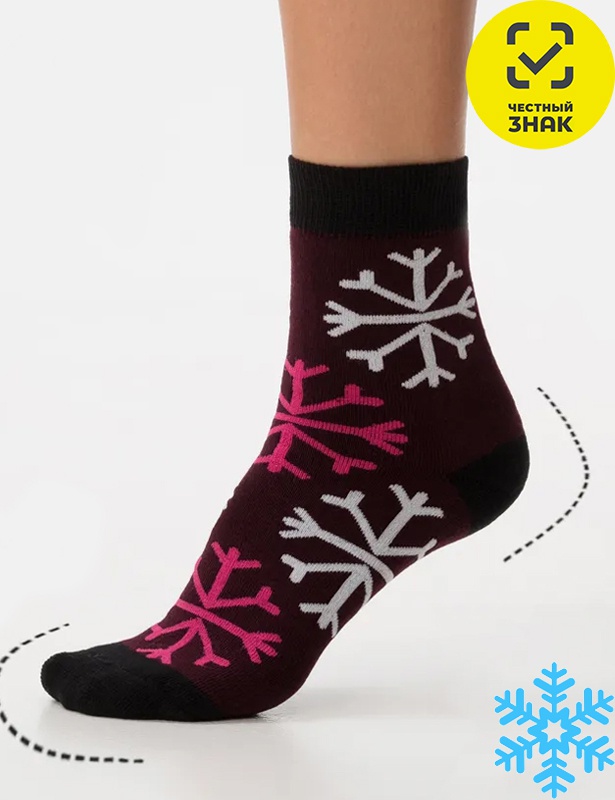 Зимние женские носки с изображением снежинки, плюш внутри.