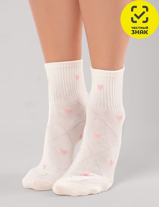 Женские носки сочетании рисунка ромб и сердечки.