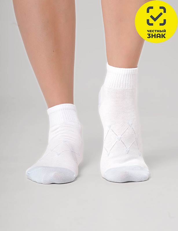 Производитель: ТМ Clever Артикул: CLE Носки жен.Д5604Z (белый/св.голубой) Пол: ЖЕНСКИЙ Полотно: гладь с рисунком Состав: 70% хб, 25% па, 5% эл Возраст: взросл