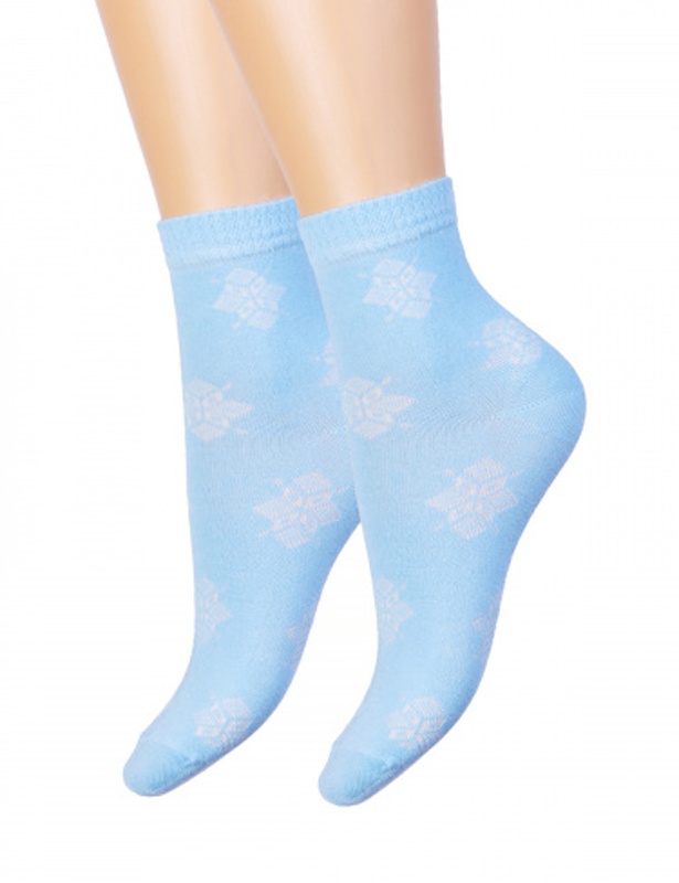 Женские носки из хлопка в сочетании с полиамидной нитью. Полиамид позволяет изделию сохранять форму во время носки и придает прочность.