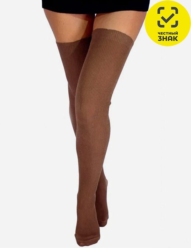 Классические женские коричневые чулки "в рубчик" из 100%-го хлопка.