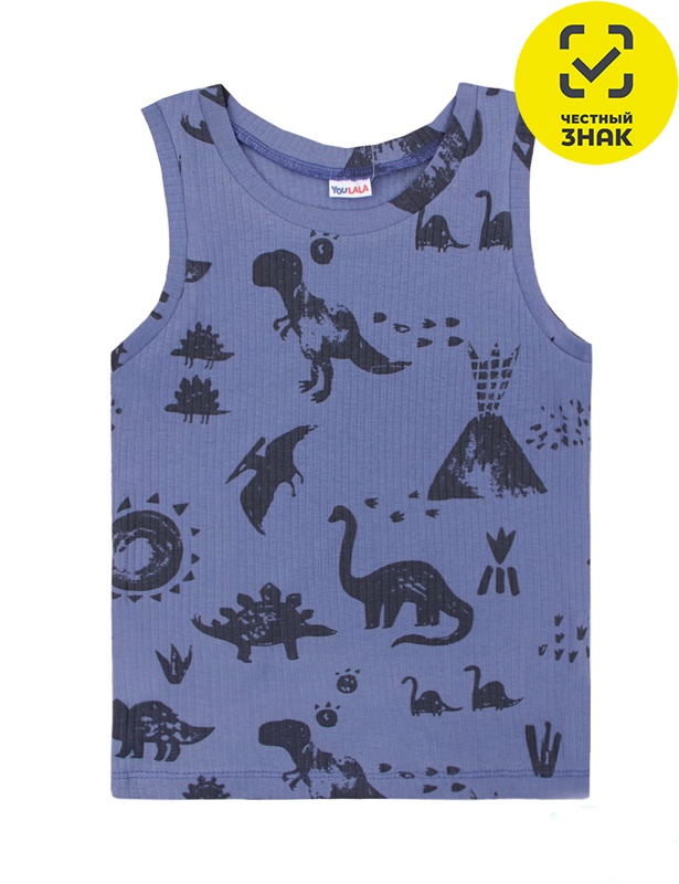 Майка детская классического кроя из трикотажного полотна с набивным рисунком. Горловина и проймы майки обработаны окантовкой.