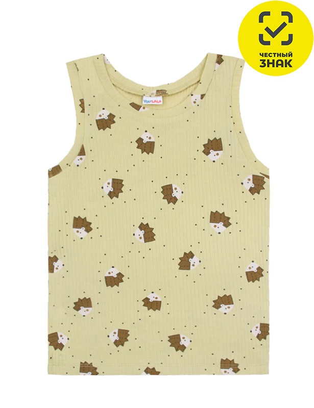 Майка детская классического кроя из трикотажного полотна с набивным рисунком. Горловина и проймы майки обработаны окантовкой.