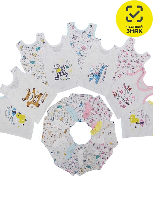 Производитель: ТМ Рекантино Артикул: Б709-11/Микс Комплект ясельный (майка+трусы) Пол: унисекс Полотно: кулирная гладь Состав: хлопок 100% Возраст: 0-2