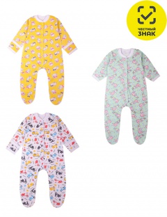 Комбинезон ясельный швы наружу из набивного футера, длинный рукав, застежка на кнопках по центру и вдоль ножек, края и ворот изделия рибана х/б.