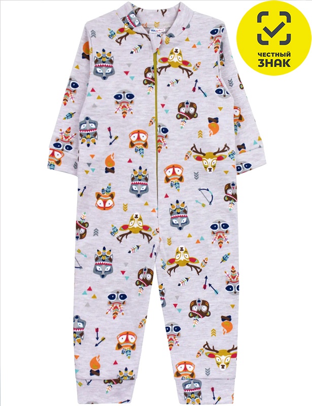 Комбинезон ясельный из набивного полотна, длинный открытый рукав, центральная застежка на молнию, воротник-стойка, открытая ножка.