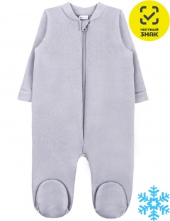 Комбинезон ясельный из футера трехнитки с начесом, длинный открытый рукав с манжетом, центральная застежка на молнию со стопом у ворота, воротник-стойка, закрытая ножка.