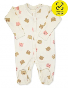 Комбинезон ясельный из набивного полотна, длинные рукава, застежка на кнопки по центру и шаговому шву, воротник окантован, закрытые ножки.