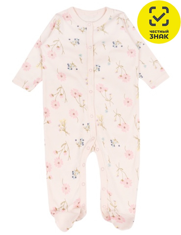 Комбинезон ясельный из набивного полотна, длинные рукава, застежка на кнопки по центру и шаговому шву, воротник окантован, закрытые ножки.