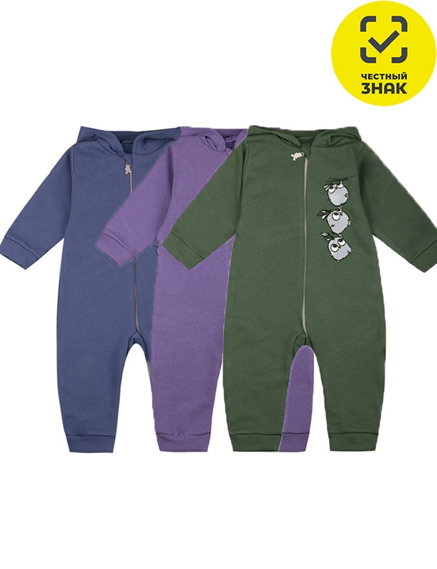 Комбинезон ясельный на молнии с капюшоном из футера 3-х нитки петля. На полочке цветная печать.