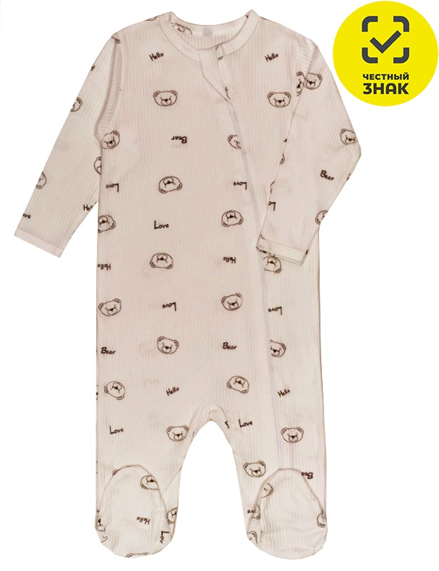 Комбинезон ясельный из интерлока в рубчик, длинный открытый рукав, смещенная застежка на молнию по всей длине изделия, закрытая ножка.