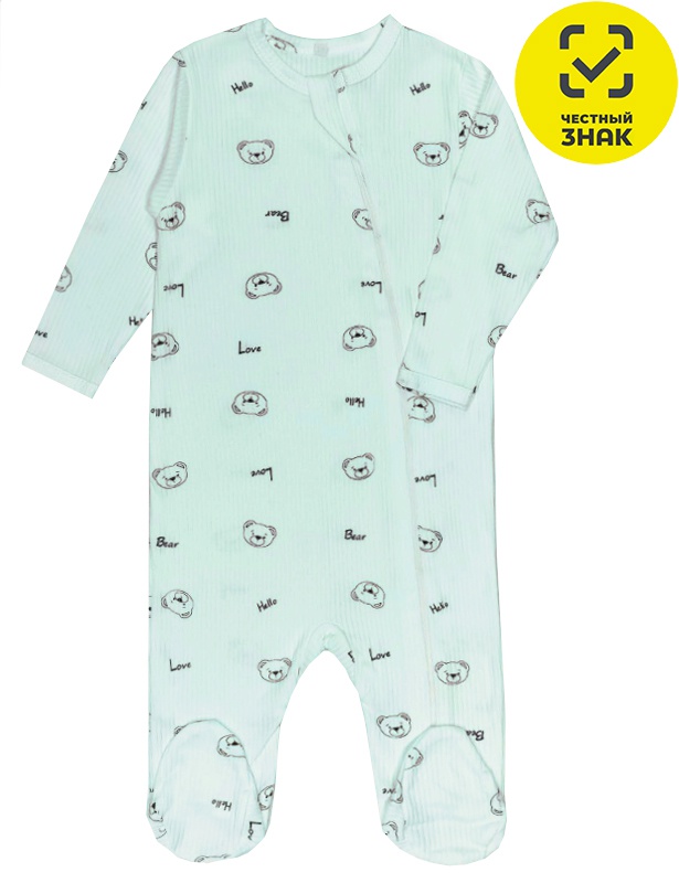 Комбинезон ясельный из интерлока в рубчик, длинный открытый рукав, смещенная застежка на молнию по всей длине изделия, закрытая ножка.