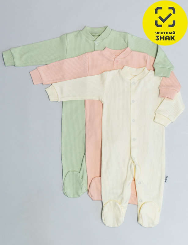Комбинезон из интерлока «лапша», с длинными рукавами на манжете, с закрытыми ножками, на центральной застёжке на кнопки и воротником-стойкой.