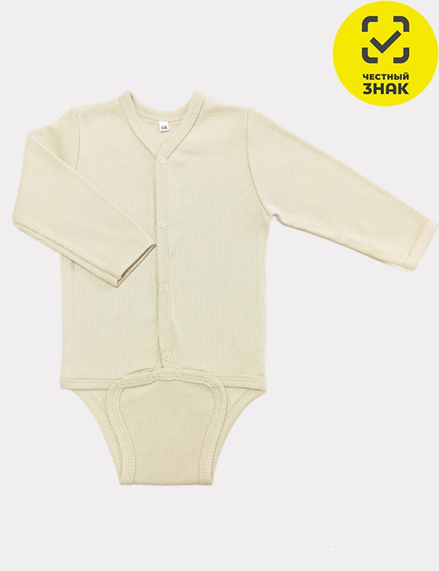 Боди ясельное из мягкого интерлока с выставом игла (лапша). Длинные втачные рукава, Центральная застежка на кнопки.