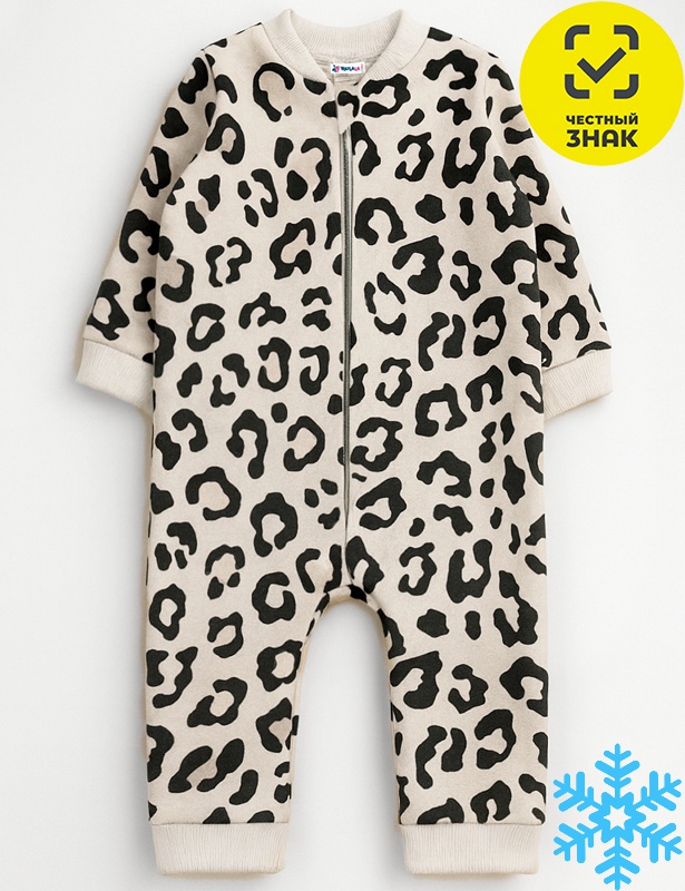 Комбинезон ясельный из набивного футера трехнитки с начесом, длинный открытый рукав с манжетом, центральная застежка на молнию, воротник-стойка, открытая ножка.