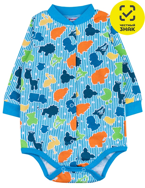 Полукомбинезон (боди) ясельный из набивного футера 2х нитки с начёсом. Застежка на кнопки по переду и в нижней части, рукав втачной длинный. Горловина, манжеты и низ изделия окантованы.