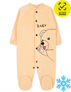 Комбинезон ясельный из футера трехнитки с начесом, длинный открытый рукав-реглан на манжете, центральная застежка на кнопках, воротник-стойка, закрытая ножка, декорирован принтом.