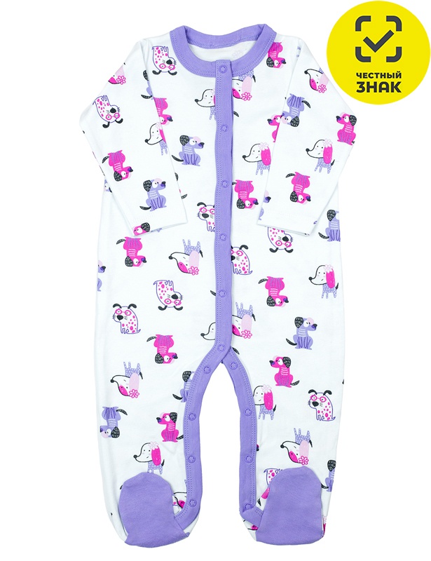Комбинезон ясельный из набивного полотна, длинные рукава, застежка на кнопки по центру и шаговому шву, воротник окантован, закрытые ножки.