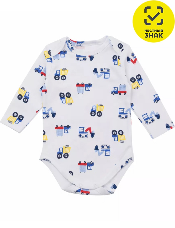 Боди ясельный для мальчика из интерлока, с длинными рукавами и застёжкой на кнопки.