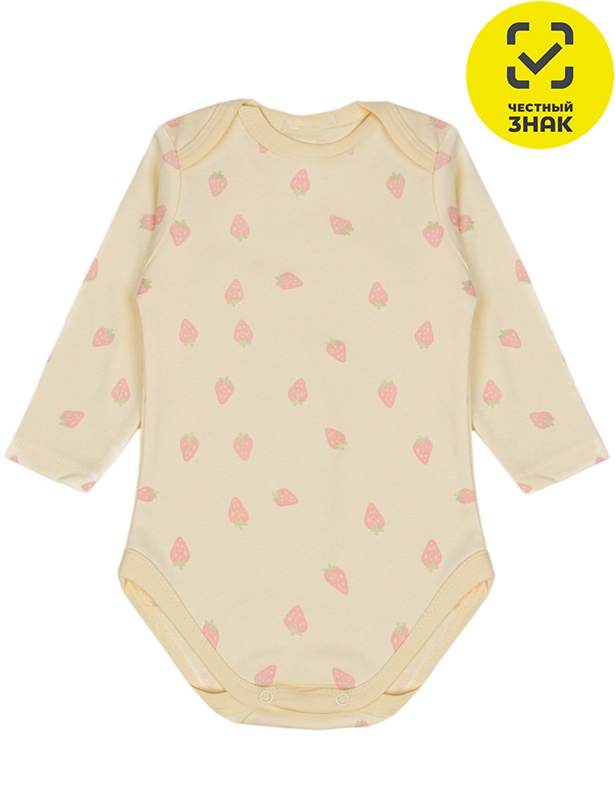 Боди ясельный для девочки из интерлока, с длинными рукавами и застёжкой на кнопки.