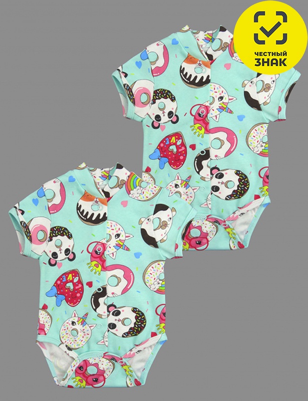 Боди короткий рукав, из хлопкового трикотажа интерлок с набивным рисунком. Застёжка на кнопочках по переду и низу. Цена указана за штуку.