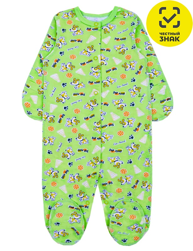 Êîìáèíåçîí äëÿ íîâîðîæäåííîãî èç íàáèâíîãî ïîëîòíà, äëèííûé çàêðûòûé ðóêàâ, çàêðûòàÿ íîæêà, öåíòðàëüíàÿ çàñòåæêà íà êíîïêè, âîðîò îêàíòîâàí è ñ çàñòåæêîé íà êíîïêó.