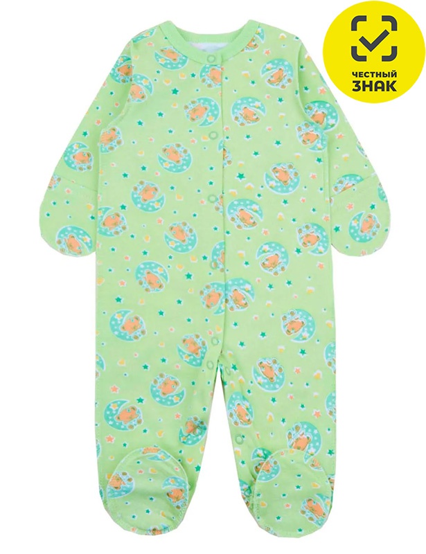 Êîìáèíåçîí äëÿ íîâîðîæäåííîãî èç íàáèâíîãî ïîëîòíà, äëèííûé çàêðûòûé ðóêàâ, çàêðûòàÿ íîæêà, öåíòðàëüíàÿ çàñòåæêà íà êíîïêè, âîðîò îêàíòîâàí è ñ çàñòåæêîé íà êíîïêó.