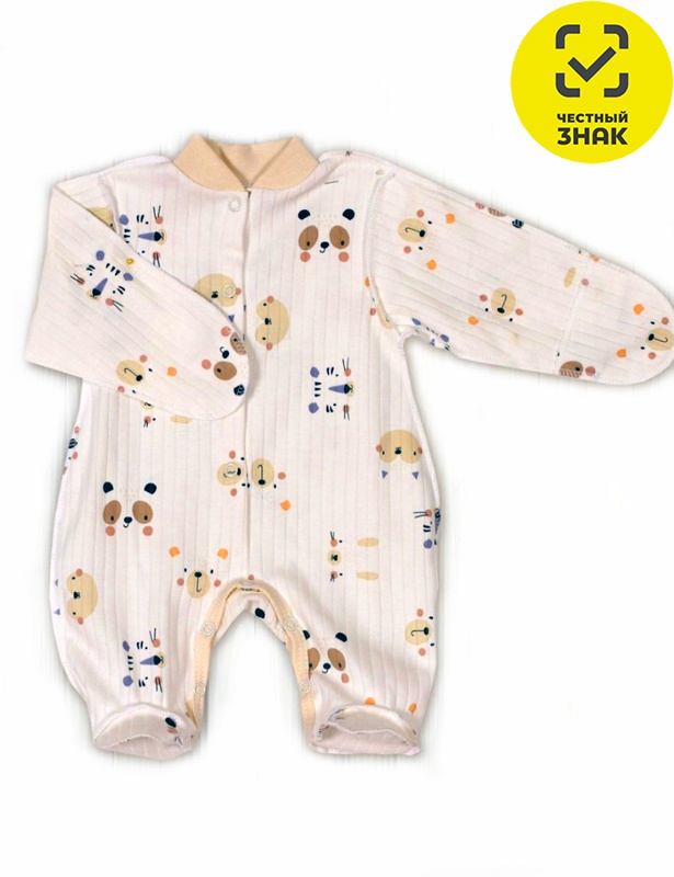 Комбинезон ясельный швы наружу из набивного интерлока, длинный закрытый рукав, застежка на кнопках по центру.