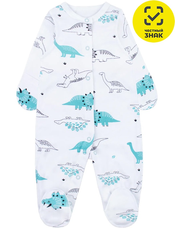 Êîìáèíåçîí äëÿ íîâîðîæäåííîãî èç íàáèâíîãî ïîëîòíà, äëèííûé çàêðûòûé ðóêàâ, çàêðûòàÿ íîæêà, öåíòðàëüíàÿ çàñòåæêà íà êíîïêè, âîðîò îêàíòîâàí è ñ çàñòåæêîé íà êíîïêó.