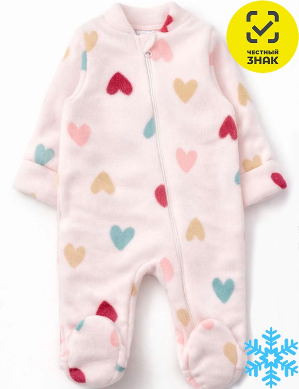 Комбинезон из набивного флиса, длинные втачные рукава на манжетах, центральная застежка на молнию, закрытая ножка.