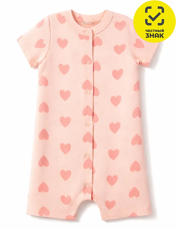 Песочник ясельный из набивного полотна лапша, рукава короткие, округлая горловина окантована бейкой, застежка на кнопки по центру.