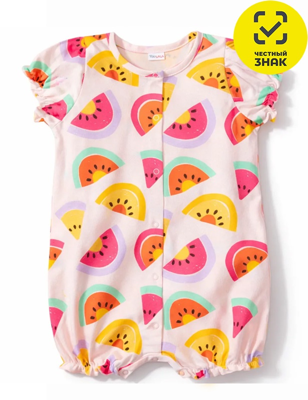 Песочник ясельный из набивного полотна, рукава короткие, округлая горловина окантована бейкой, застежка на кнопки по центру.