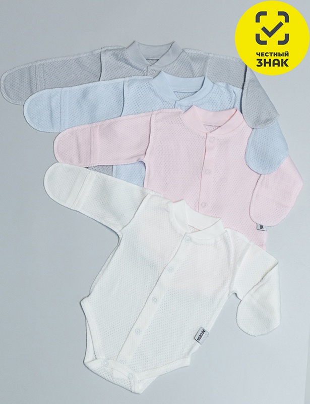 Производитель: ТМ Amelli Артикул: Боди КЛ.290.140.0.0.044 Пол: унисекс Полотно: ажур Состав: хлопок 100% Возраст: 0-2