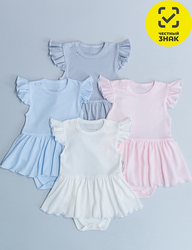 Производитель: ТМ Amelli Артикул: Боди-Платье КЛ.290.050.0.0.044 Пол: девочка Полотно: ажур Состав: хлопок 100% Возраст: 0-2