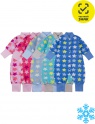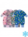 Комбинезон ясельный из набивного флиса без подклада, длинный рукав, открытая ножка, застежка на кнопках по центру, ворот и манжеты выполнены из гладкокрашеной рибаной с лайкрой.