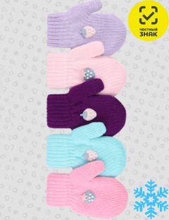 Производитель: ТМ Теплыши Артикул: TMg-021 Варежки детские, двойные Пол: девочка Полотно: вязаное полотно Состав: верх: 30% шерсть, 70% акрил, подклад: 90% хб, 10% акрил Возраст: 0-2