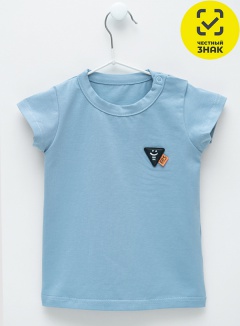 Футболка из гладкокрашеного кулирного полотна, с короткими втачными рукавами, округлой горловиной, застежкой на кнопки по плечу, на полочке печать.