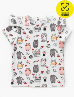 Футболка для девочки из набивного полотна, с короткими втачными рукавами, округлая горловина, притачная рюша в пройме рукавов.