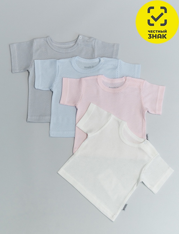 Производитель: ТМ Amelli Артикул: Футболка КЛ.150.008.0.0.044 Пол: унисекс Полотно: ажур Состав: хлопок 100% Возраст: 0-2