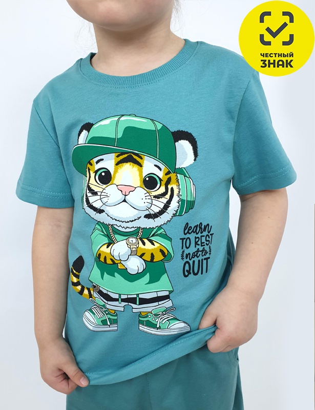 Футболка для мальчика имеет прямой силуэт, короткий втачной рукав и горловину, обработанную ластиком. На передней части футболки расположена печать.