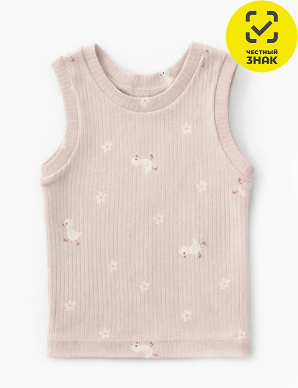Майка детская классического кроя из трикотажного полотна лапша. Горловина и проймы майки обработаны окантовкой.