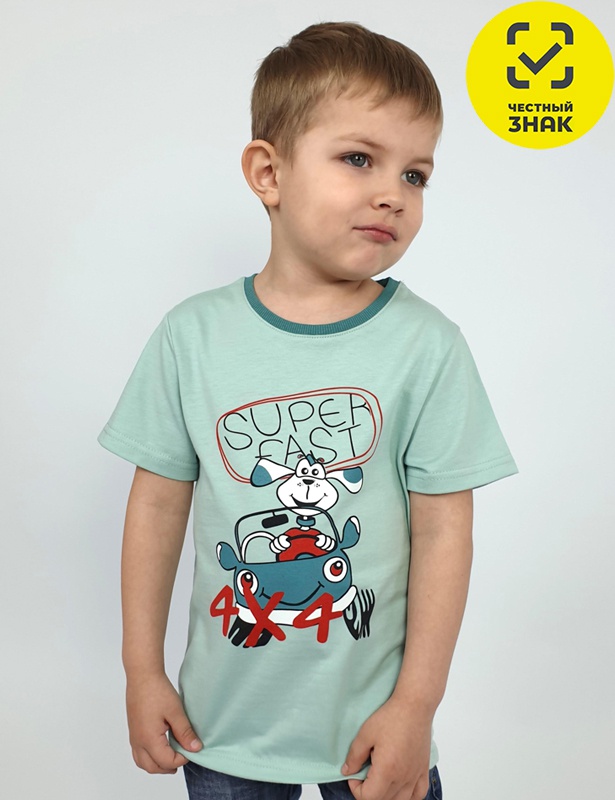 Футболка для мальчика - прямой силуэт, короткий втачной рукав. Горловина обработана ластиком контрастного цвета. Печать на переде.