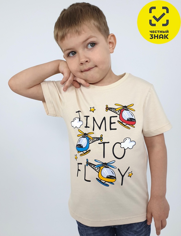 Футболка для мальчика - прямой силуэт, короткий втачной рукав. Горловина обработана ластиком. Печать на переде.