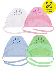 Шапочка ясельная из гладкого интерлока с печатью. Завязки и края из кашкорсе хб.