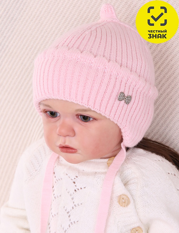 Производитель: ТМ Теплыши Артикул: D-04-97 (м) Шапка для девочки с х/б подкладом Пол: девочка Полотно: вязаное полотно Состав: 30% шерсть, 70% акрил, подклад: 95% хб, 5% эл Возраст: 0-2
