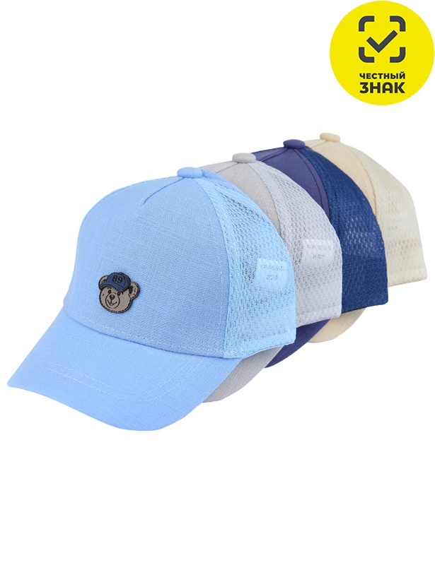 Бейсболка из хлопкового полотна, декорирована нашивкой, сзади фиксируется по обхвату головы при помощи застежки.