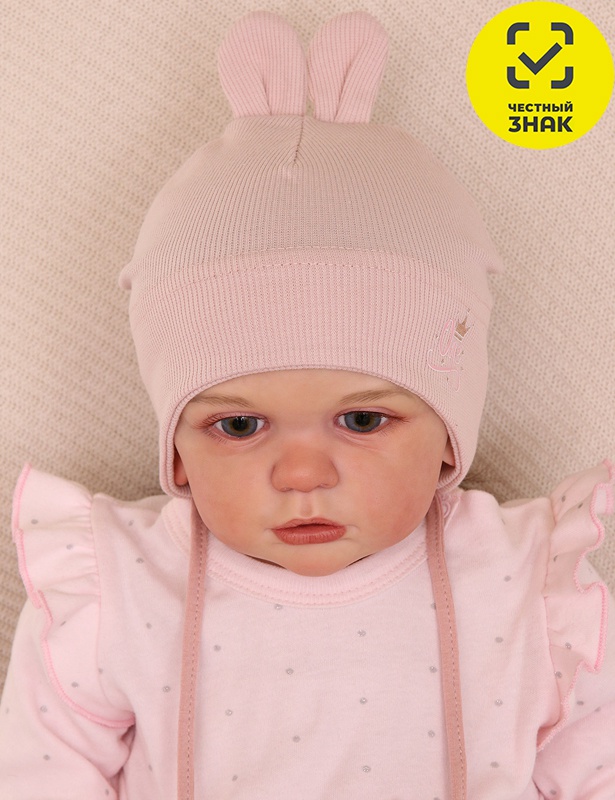Шапочка для девоки на сезон осень-весна, с завязками и отворотом, декорирована ушками.
