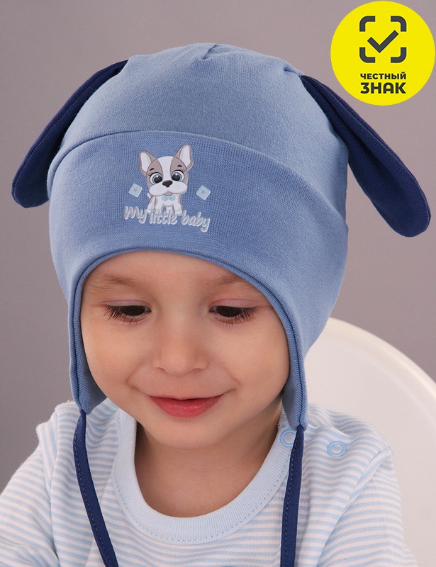 Шапка для мальчика на сезон осень-весна, декор – забавные ушки и модный рисунок с изображением милого песика.