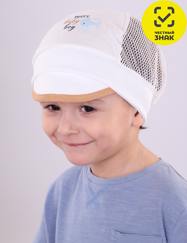 Кепочка летняя с козырьком, на эластичной манжете, вставки из сетки по бокам, декорирована рисунком.